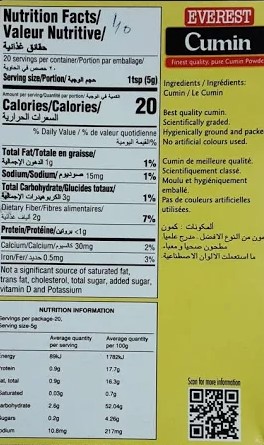 Everest Jeera Powder delivers authentic flavor in every dish. FSSAI No: 10012064000291