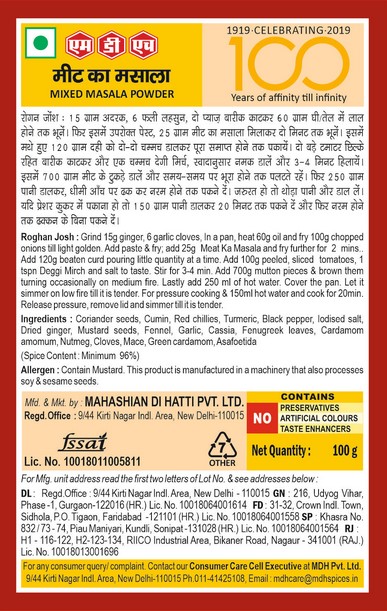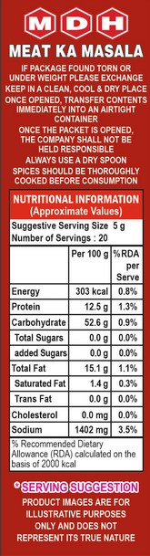 MDH Meat Masala is a flavorful and authentic Indian spice mix. FSSAI No: 10012022000345
