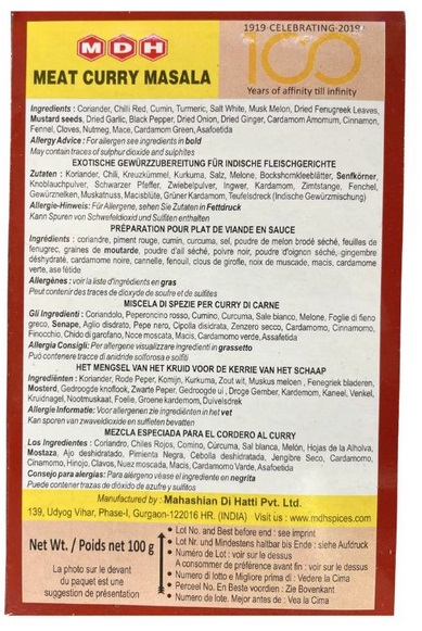 MDH Mutton Curry Masala is a flavorful and authentic Indian spice mix. FSSAI No: 10012022000345