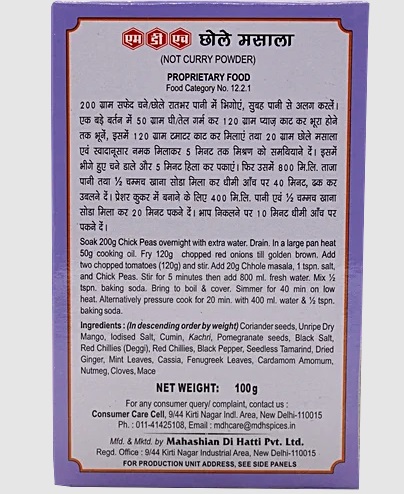 This is a Vegetarian product. MDH chole masala is the best ingredient to cook peppery, flavoursome and tasty chana masala. If you desire chole masala to be spicier add extra spices along with MDH chana masala.