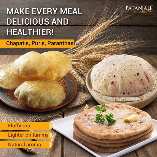 Patanjali Whole Wheat atta is able to provide you with an immense energy source due in all parts of the grain kernel, including the bran, germ, and endosperm.
