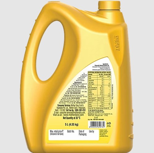 Packed by: (A) Regional Oilseeds Growers’ Co-operative Union Ltd., M.I. Area, Alwar – 301 030 Rajasthan. Lic. No. 10012013000392