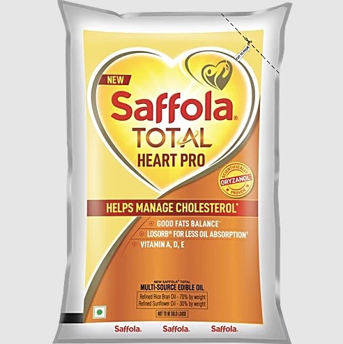 Saffola Total Heart Pro multisource edible oil is scientifically proven to help manage cholesterol with the Power of 6, which includes Oryzanol, Vitamins A, D, and E, LOSORB Technology for less oil absorption, and a good balance of MUFA and PUFA. Based on a frying study conducted on potatoes in 2018, Saffola Total contains Oryzanol, which helps reduce high blood cholesterol—specifically LDL cholesterol.
